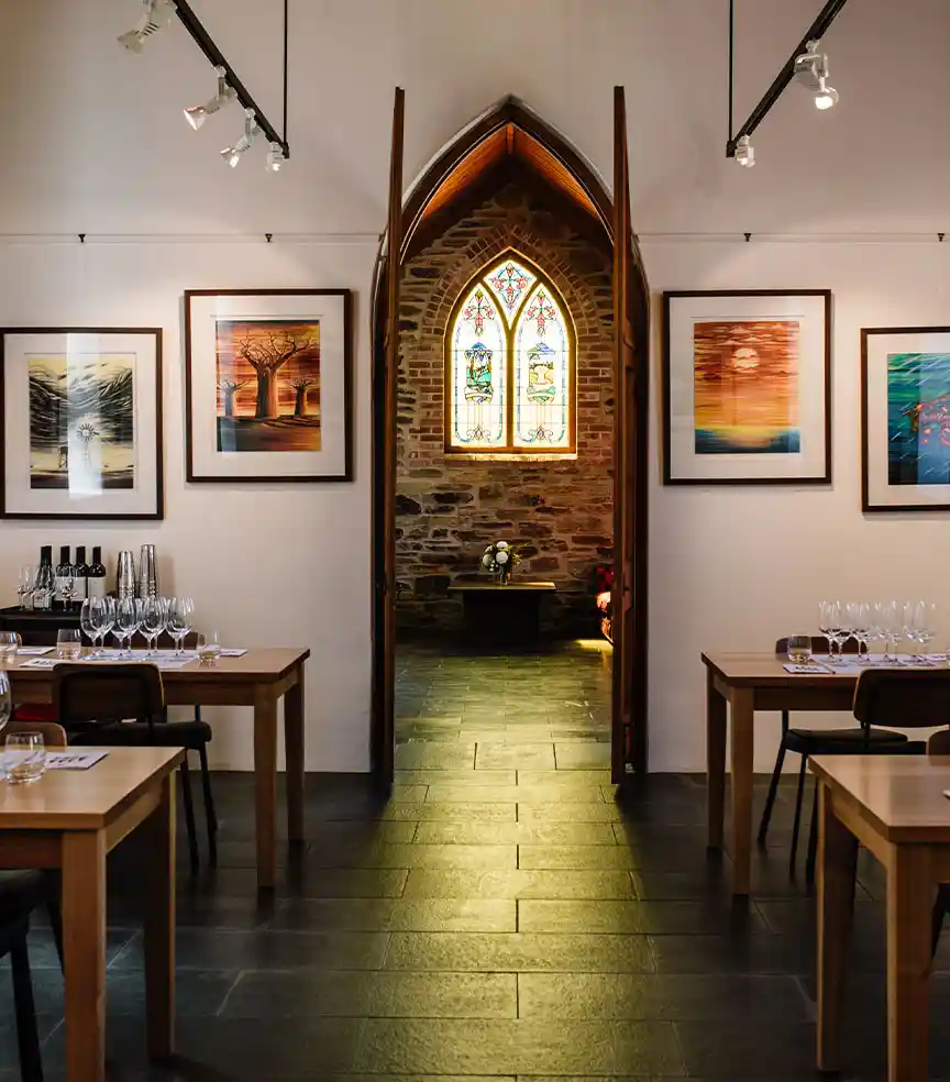 We would love to host you in our Tasting Room within an iconic 150 year old chapel on the hill overlooking McLaren Vale. Let us treat you to an experience of fine wine, heritage and art, all an easy 35 minute drive from Adelaide’s CBD.